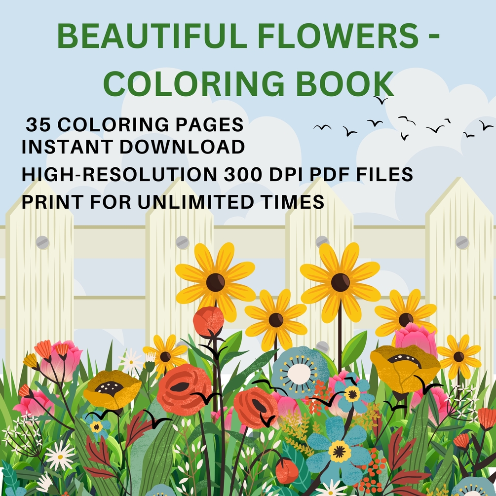 35 beautiful flowers coloring pages, Adult Colouring Pages, flower art, coloring pages, 35 Printable Colouring Pages, 300 DPI PDF, Digital Colouring Pages, High quality coloring pages
