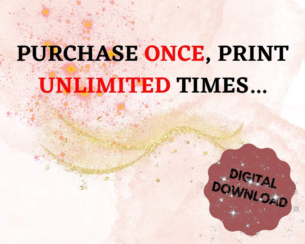 The digital files and printed versions provided are strictly intended for personal use only. It is important to refrain from distributing or selling them through any online or physical platforms. Your cooperation is greatly appreciated. 😊