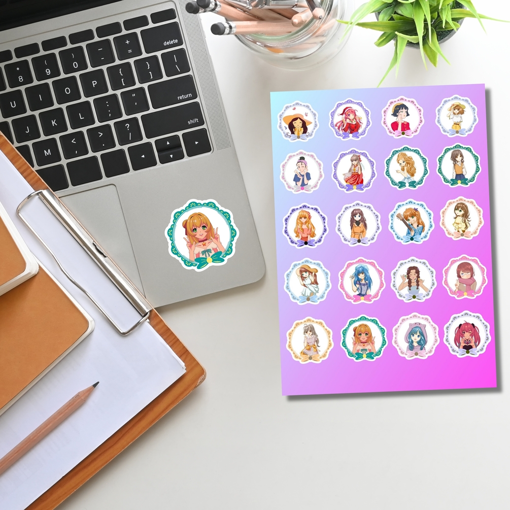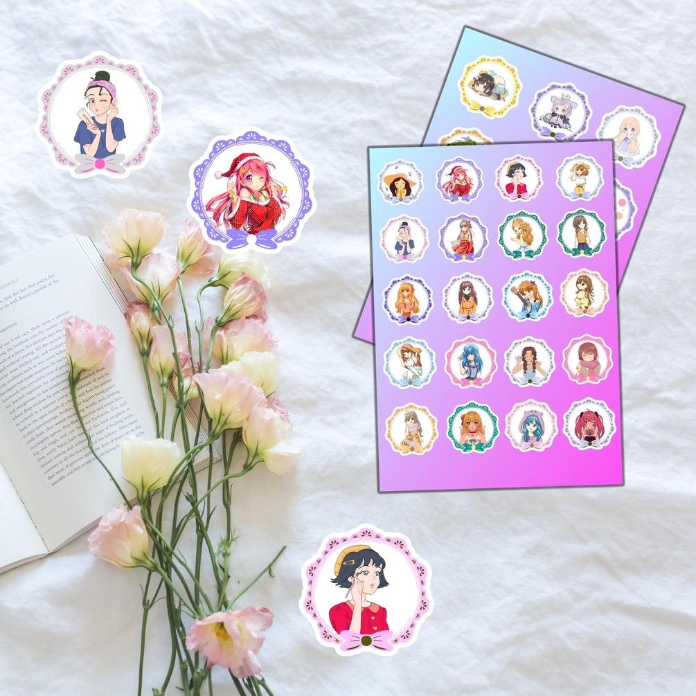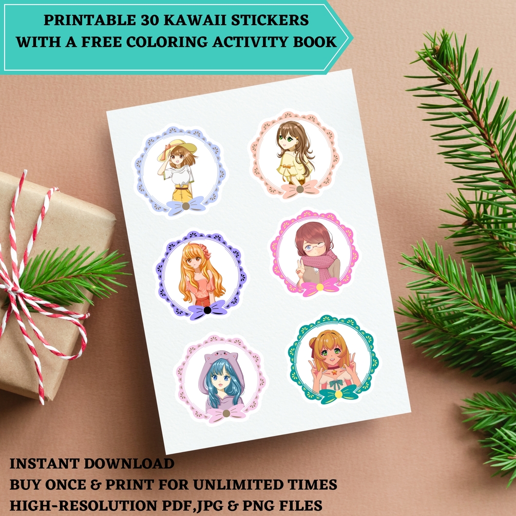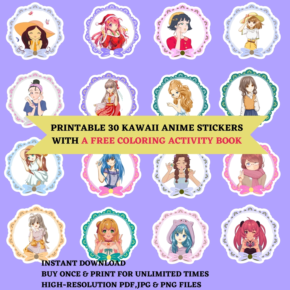 30 KAWAII ANIME STICKERS, Printable stickers,Digital stickers png,Cute stickers,Digital sticker pack,Sticker sheet,Sticker bundle,Anime Girl